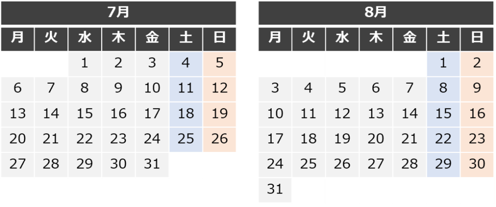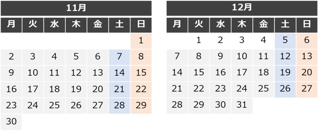 祝日の文字に下線が引かれているのが、法定祝日に該当するんですね。
